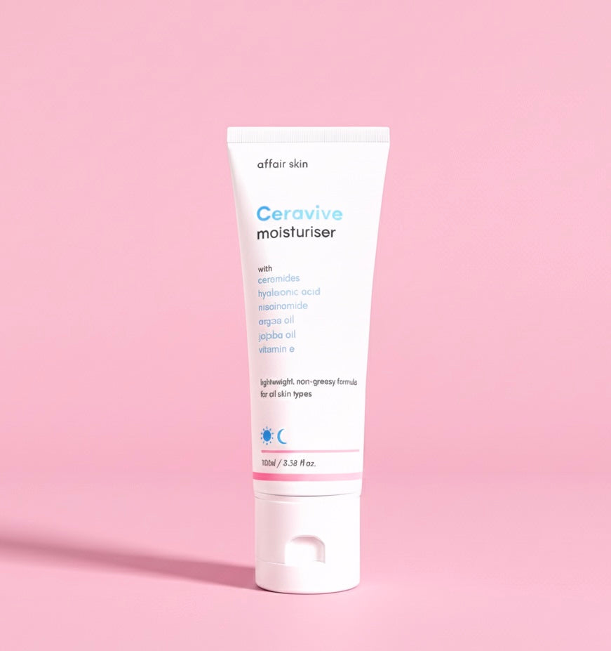 Our Ceravive Moisturiser, enriched with Ceramides, Hyaluronic Acid, Niacinamide, Argan Oil, Jojoba Oil, and Vitamins E, deeply nourishes and strengthens your skin's barrier. Its lightweight, non-greasy texture absorbs effortlessly, delivering intense hydration without feeling heavy. Say goodbye to dry, chapped skin, and hello to a smooth, radiant complexion that feels rejuvenated and refreshed